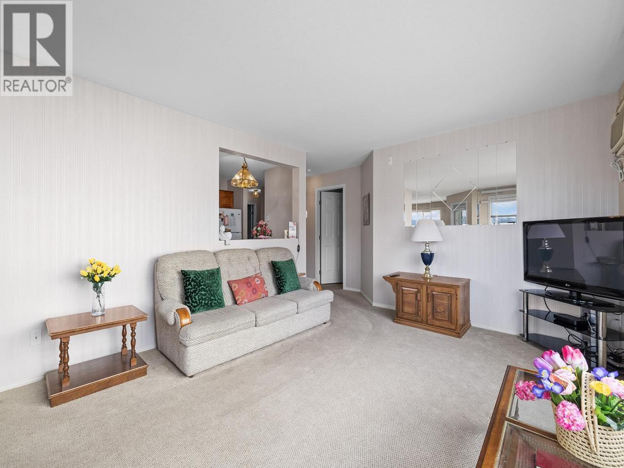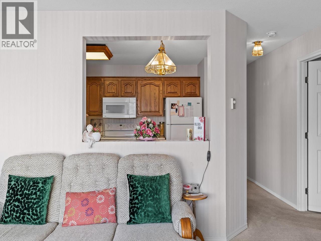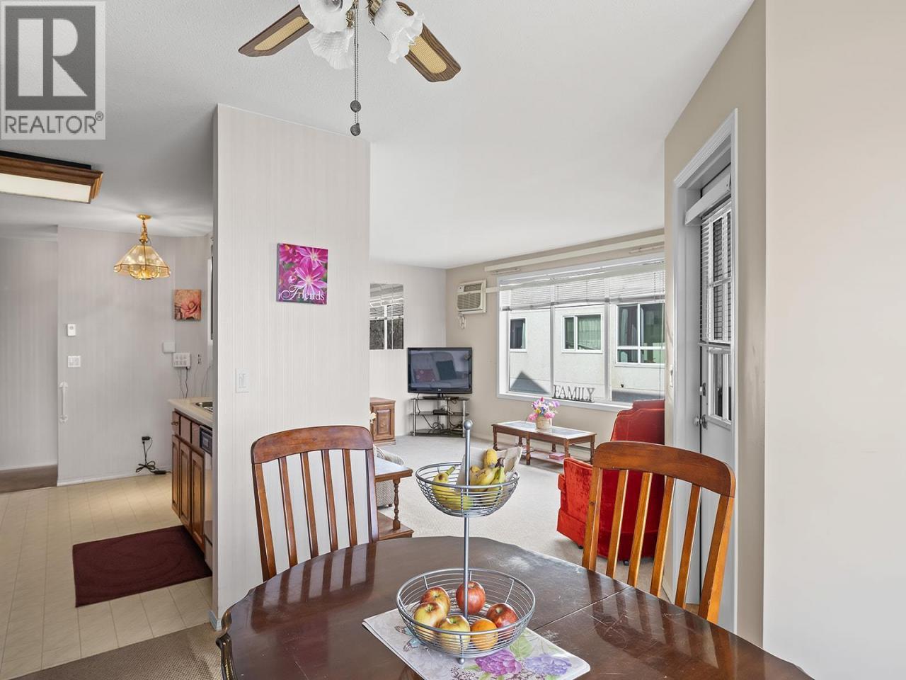 Bright 2-bedroom, 2-bathroom corner unit with desirable north-east exposure, ideally located near the Lower Mission shopping district. This home features updated carpeting and a comfortable layout filled with natural light. Situated in the Gordon Park Housing Community (50+), residents enjoy access to excellent amenities including a communal kitchen, games room with pool table, fitness room, library, and a well-equipped woodworking shop. Conveniently located close to shopping, restaurants, medical services, walking trails, and Okanagan Lake. The unit also includes single parking in a shared garage and a private enclosed patio. Cash purchase only. No pets or rentals permitted. Quick possession available. (id:6769)