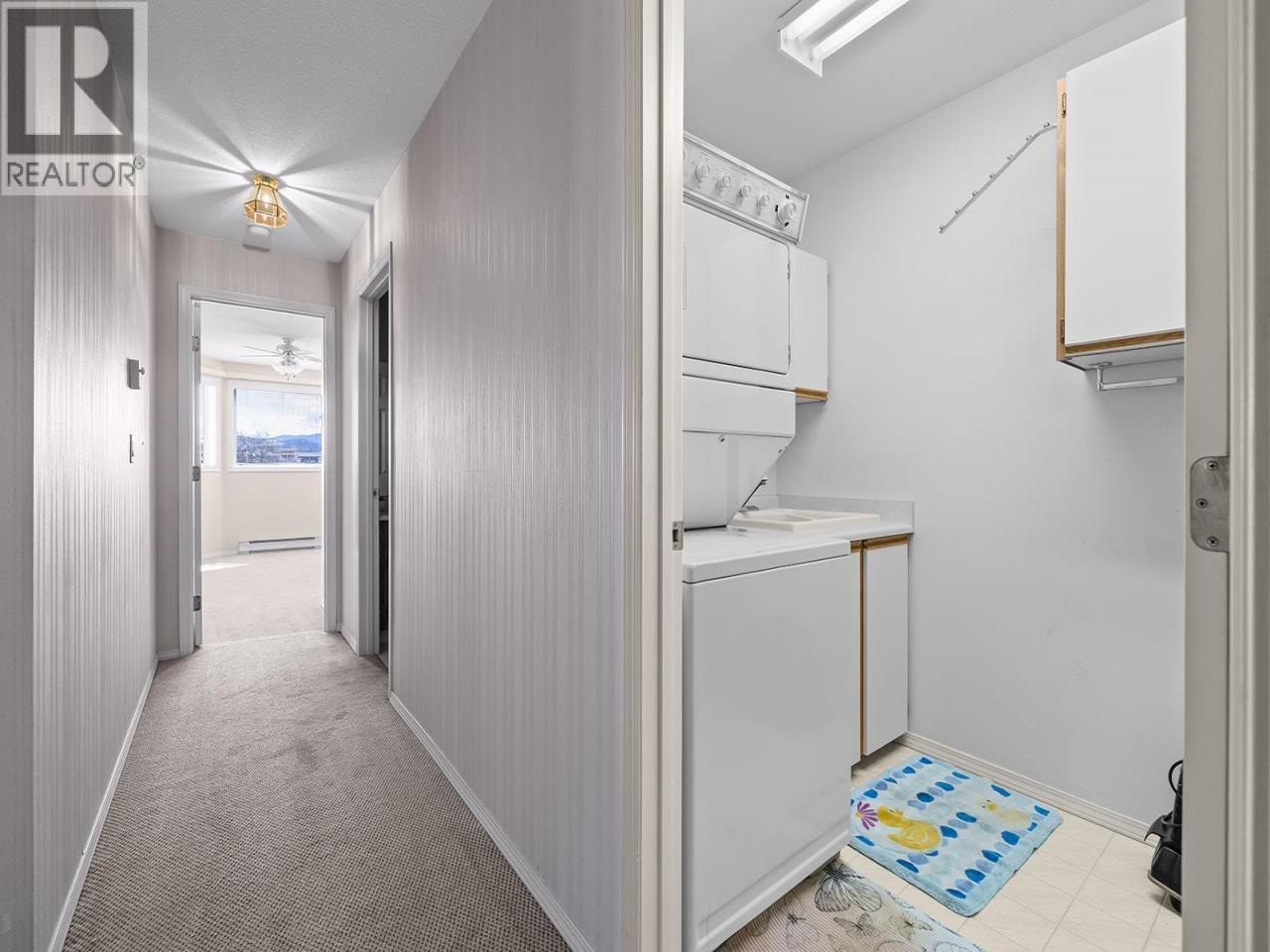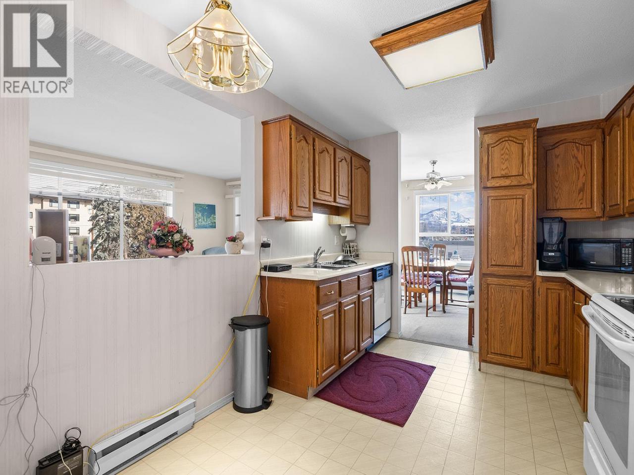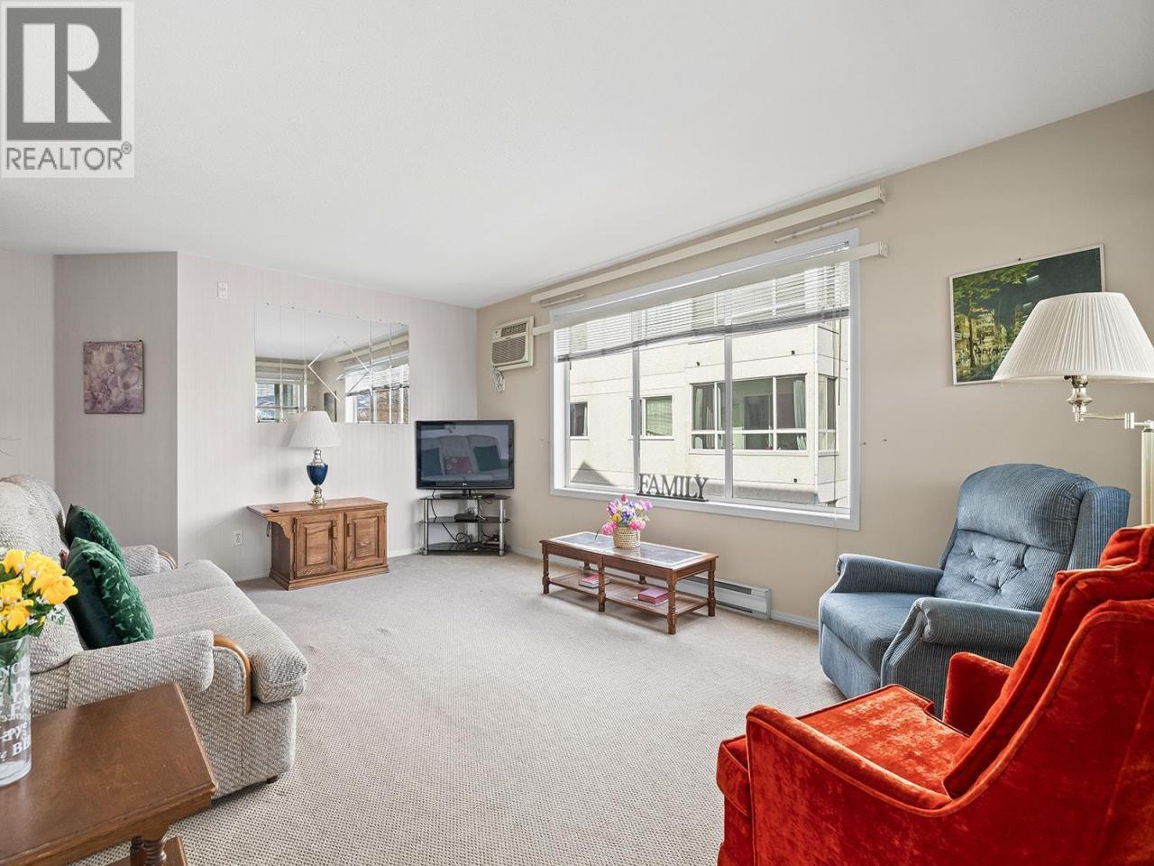 Bright 2-bedroom, 2-bathroom corner unit with desirable north-east exposure, ideally located near the Lower Mission shopping district. This home features updated carpeting and a comfortable layout filled with natural light. Situated in the Gordon Park Housing Community (50+), residents enjoy access to excellent amenities including a communal kitchen, games room with pool table, fitness room, library, and a well-equipped woodworking shop. Conveniently located close to shopping, restaurants, medical services, walking trails, and Okanagan Lake. The unit also includes single parking in a shared garage and a private enclosed patio. Cash purchase only. No pets or rentals permitted. Quick possession available. (id:6769)