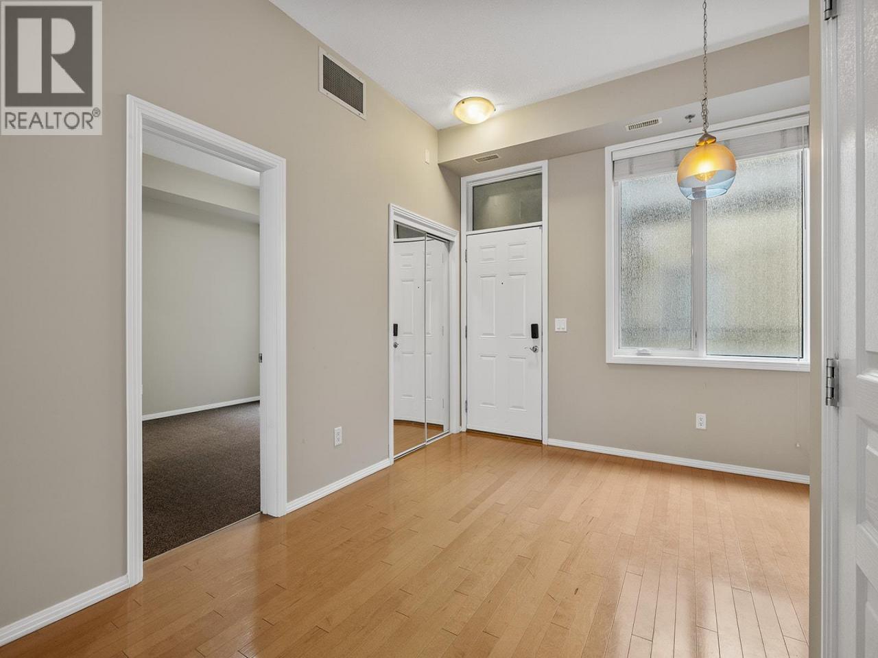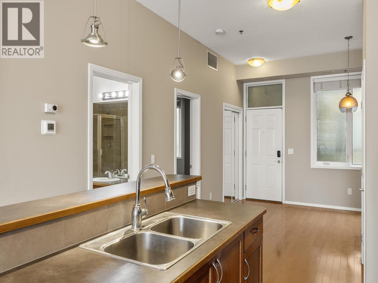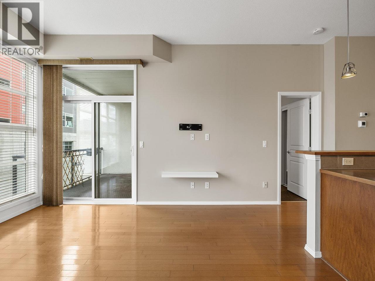 Experience the vibrant heart of Kelowna’s Cultural District in this bright, two-bedroom condo at Ellis Court. Unbeatable location is everything: step outside your door and you are moments away from Prospera Place, Kelowna Community Theatre, YMCA, local breweries, exceptional restaurants, unique shops and Safeway. The lake and beaches are just minutes away, offering the perfect urban-meets-nature lifestyle. The condo itself features an open floor plan enhanced by soaring 10-foot ceilings and huge windows, flooding the space with natural light. The living room boasts hardwood flooring and leads to an east-facing covered deck with a mountain view. The kitchen is complete with maple cabinetry, stainless steel appliances, and a raised eating bar. Building amenities include secure underground parking (with one assigned stall), central heat and air conditioning, in-unit laundry, a storage locker, and a sophisticated glass elevator. Ellis Court is also a pet-friendly building (with restrictions). This unit is vacant and ready for you to move in. (id:6769)