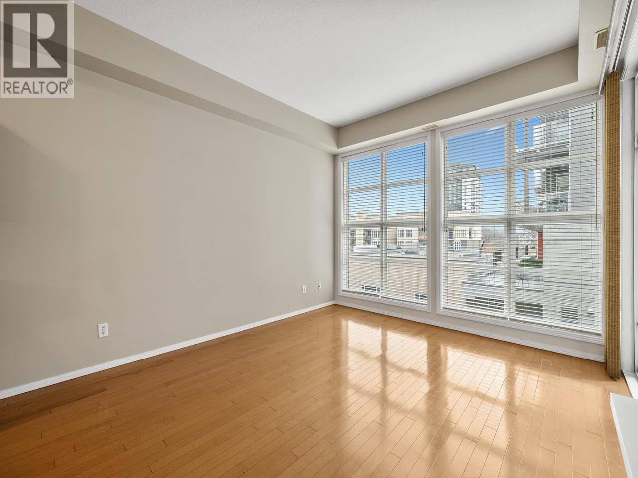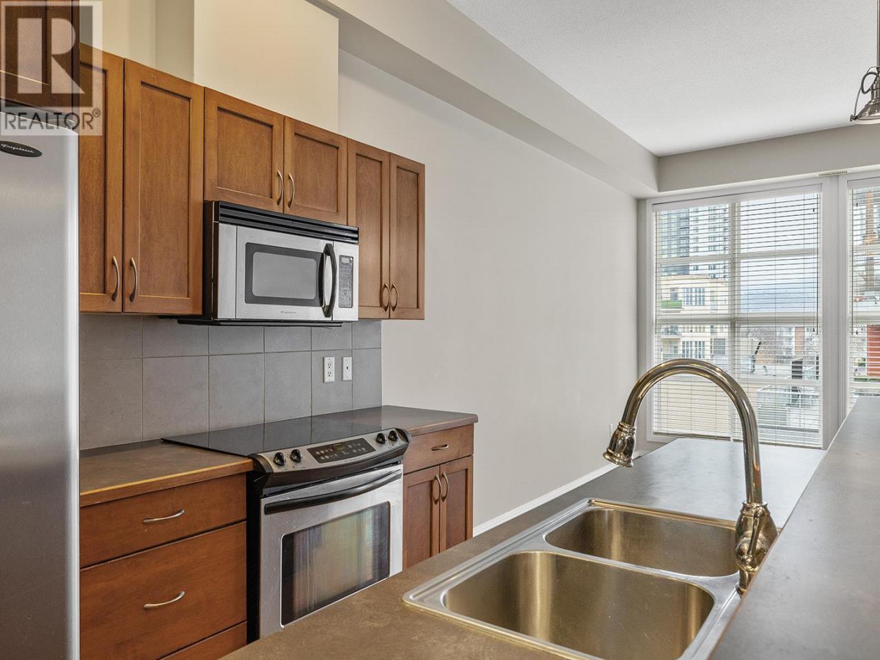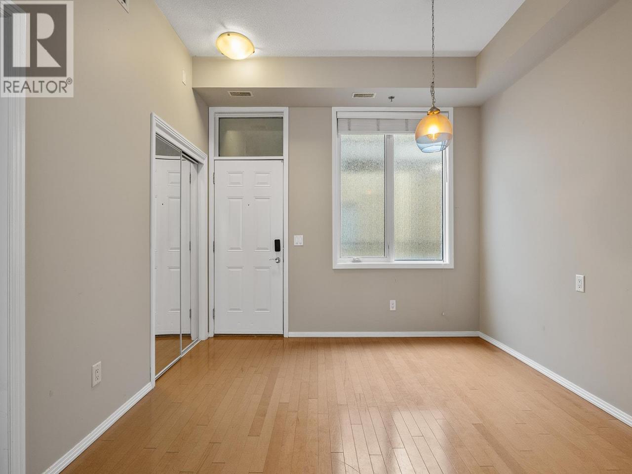 Experience the vibrant heart of Kelowna’s Cultural District in this bright, two-bedroom condo at Ellis Court. Unbeatable location is everything: step outside your door and you are moments away from Prospera Place, Kelowna Community Theatre, YMCA, local breweries, exceptional restaurants, unique shops and Safeway. The lake and beaches are just minutes away, offering the perfect urban-meets-nature lifestyle. The condo itself features an open floor plan enhanced by soaring 10-foot ceilings and huge windows, flooding the space with natural light. The living room boasts hardwood flooring and leads to an east-facing covered deck with a mountain view. The kitchen is complete with maple cabinetry, stainless steel appliances, and a raised eating bar. Building amenities include secure underground parking (with one assigned stall), central heat and air conditioning, in-unit laundry, a storage locker, and a sophisticated glass elevator. Ellis Court is also a pet-friendly building (with restrictions). This unit is vacant and ready for you to move in. (id:6769)
