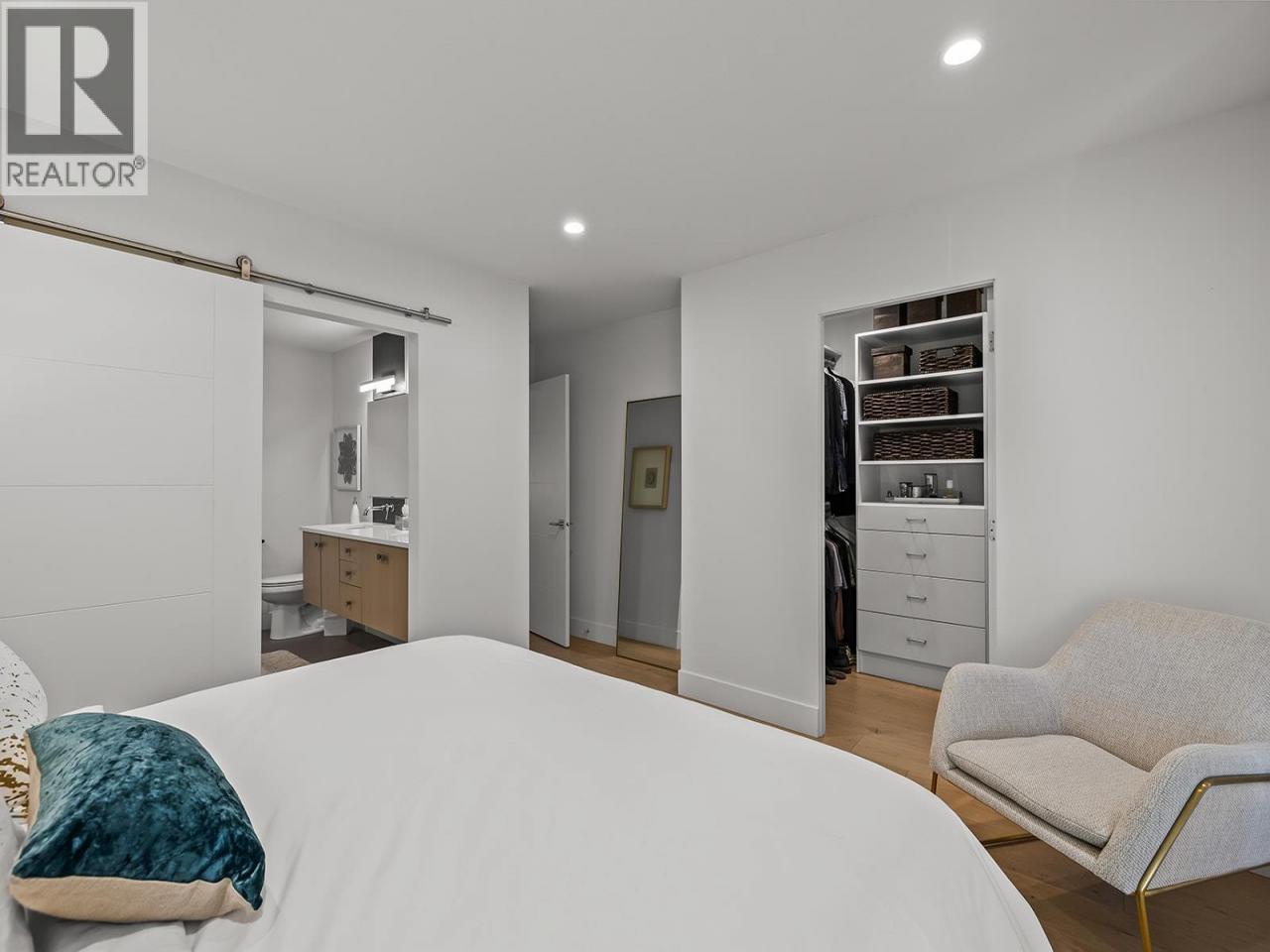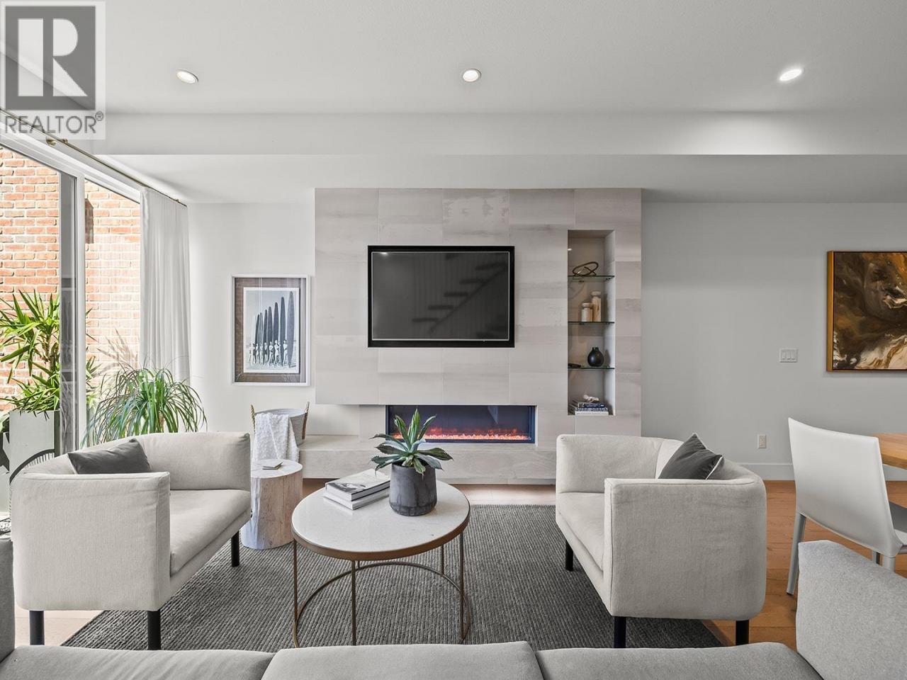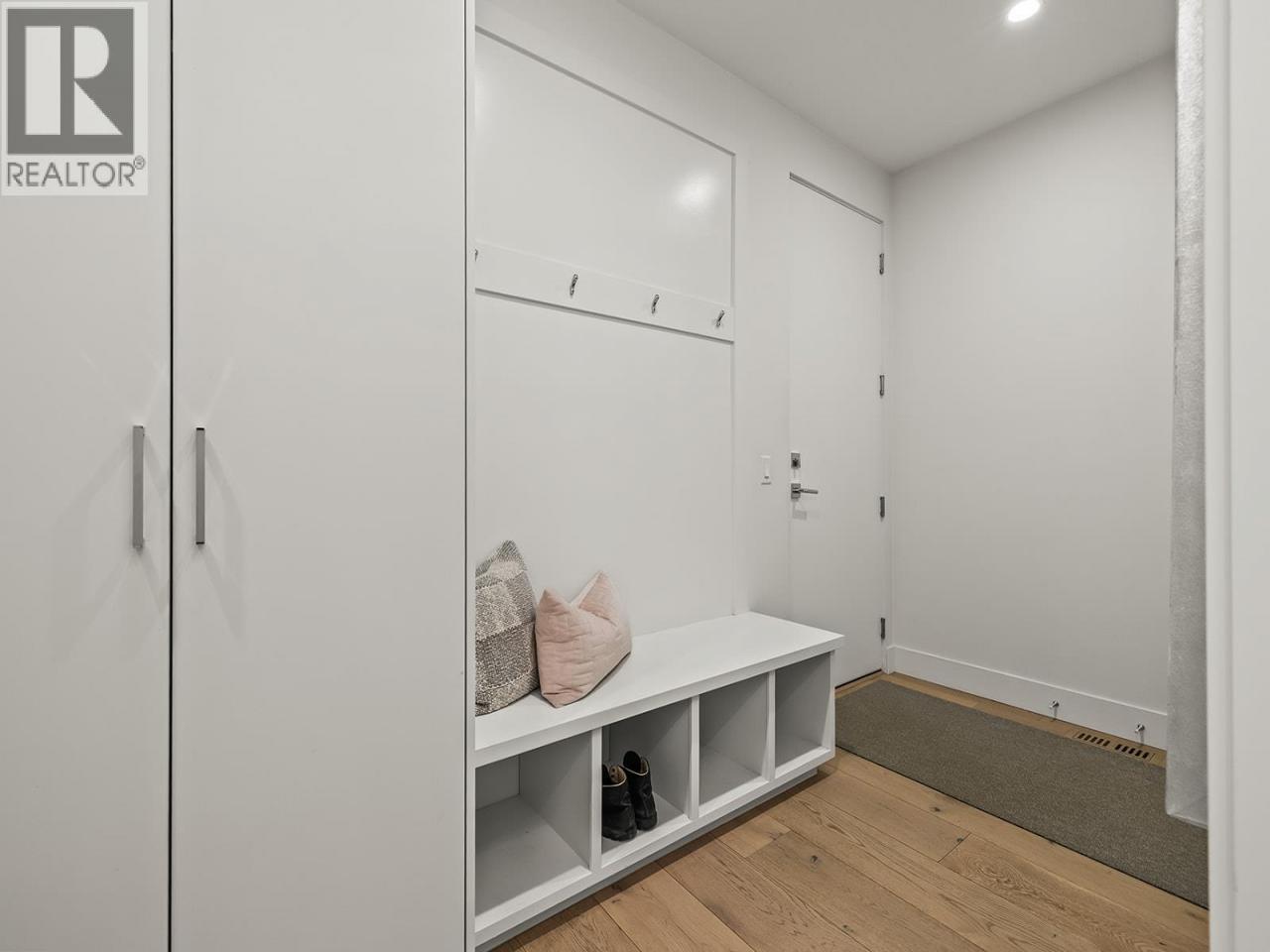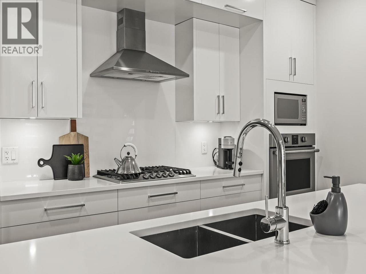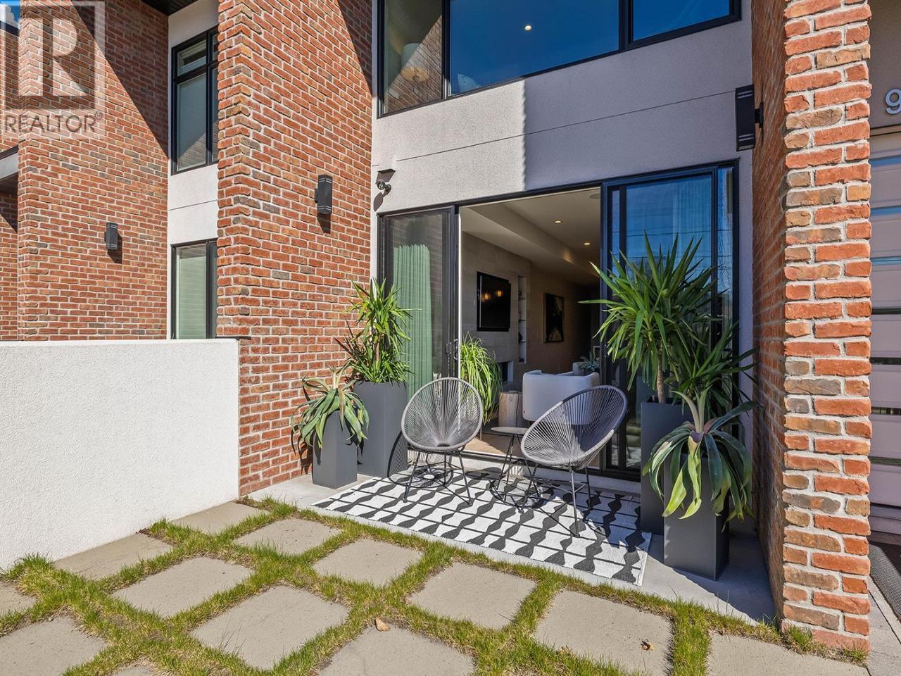 Welcome to this contemporary, modern townhome offering an exceptional lifestyle and is perfectly situated. This property features three bedrooms and three bathrooms with 1914 square feet of bright, open interior living space and an additional 452 square feet of private outdoor space. The main floor boasts a grand level entry and an open-concept layout, ideal for entertaining. The kitchen is fully equipped with stainless steel appliances and features flat-panel cabinets and premium quartz countertops, which are featured throughout the home. The second level is thoughtfully designed for comfort and convenience, housing all three bedrooms, a lounge/family room, and laundry space. The luxurious primary suite includes a walk-in closet and a five-piece ensuite bathroom with a modern glass shower and a soaker tub. The two additional bedrooms are ideal for family or guests and share a full bathroom equipped with a double vanity. They also have their own patio doors leading to a private, quiet covered deck. One of the standout features of this property is the extensive outdoor space: a front patio, a private rooftop patio and covered deck off the spare bedrooms making it perfect for exceptional outdoor entertaining, enjoying Okanagan evenings and mountain views. If you need space for your toys and storage, this home features an attached double garage and an easily accessible crawl space for extra storage. Ideally located, this sought-after neighborhood is perfect for walking or biking to local amenities, including beaches, parks, shopping, transit, and Downtown Kelowna. Pets are allowed with restrictions. (id:6769)