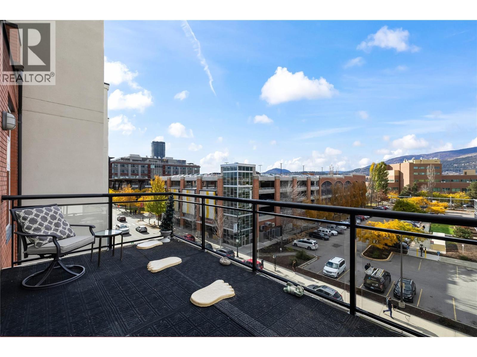 Downtown Kelowna Loft Living at Its Best! Nearly 2,000 Sq Ft of Bright, Stylish Space. A truly unique and rare offering in the heart of Downtown Kelowna. Welcome to Ellis Court. This exceptional home combines urban sophistication with spacious comfort, featuring soaring 20-foot ceilings, beautiful hardwood floors throughout, and expansive west-facing windows that fill the space with natural light and Okanagan Lake within sight. The main floor offers two generous bedrooms and two full baths, including a luxurious 5-piece primary ensuite and a 3-piece cheater ensuite for guests. A large uncovered balcony off the living area provides the perfect spot to take in the downtown sights and sounds. Upstairs, the massive loft offers flexible space for a third bedroom or media lounge, and an additional space for a home office, complete with its own 3-piece bath and two private balconies, ideal for enjoying quiet morning coffee or evening sunsets. Modern upgrades bring peace of mind, including: New furnace & A/C (2021), Washer & dryer (2021), Hot water tank (2017), Motorized blackout curtains in living room & loft (2024), New sliding patio doors (2020) and balcony flooring (2020). Ellis Court is pet-friendly (with restrictions) and includes 1 parking stall and 1 storage locker. Step outside your door to Prospera Place, Kelowna Community Theatre, the YMCA, local breweries, restaurants, and shops — all just minutes from the lake and beaches. This is downtown living without compromise. (id:6769)