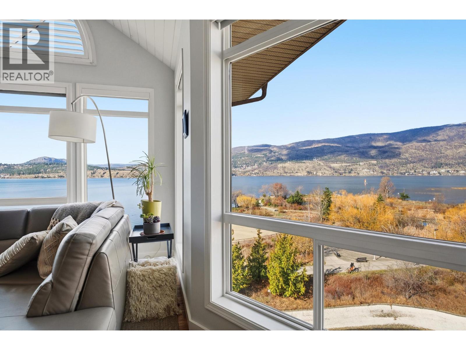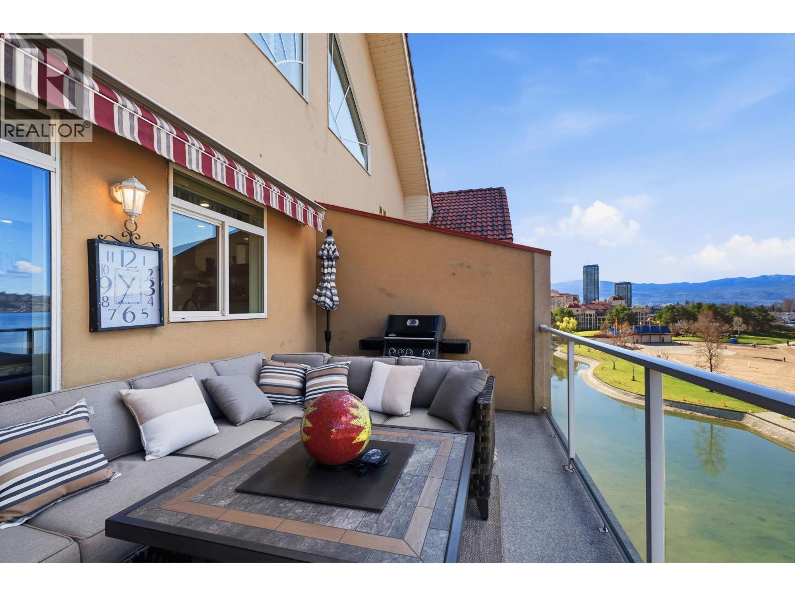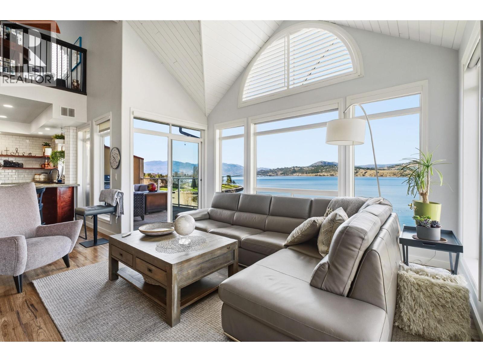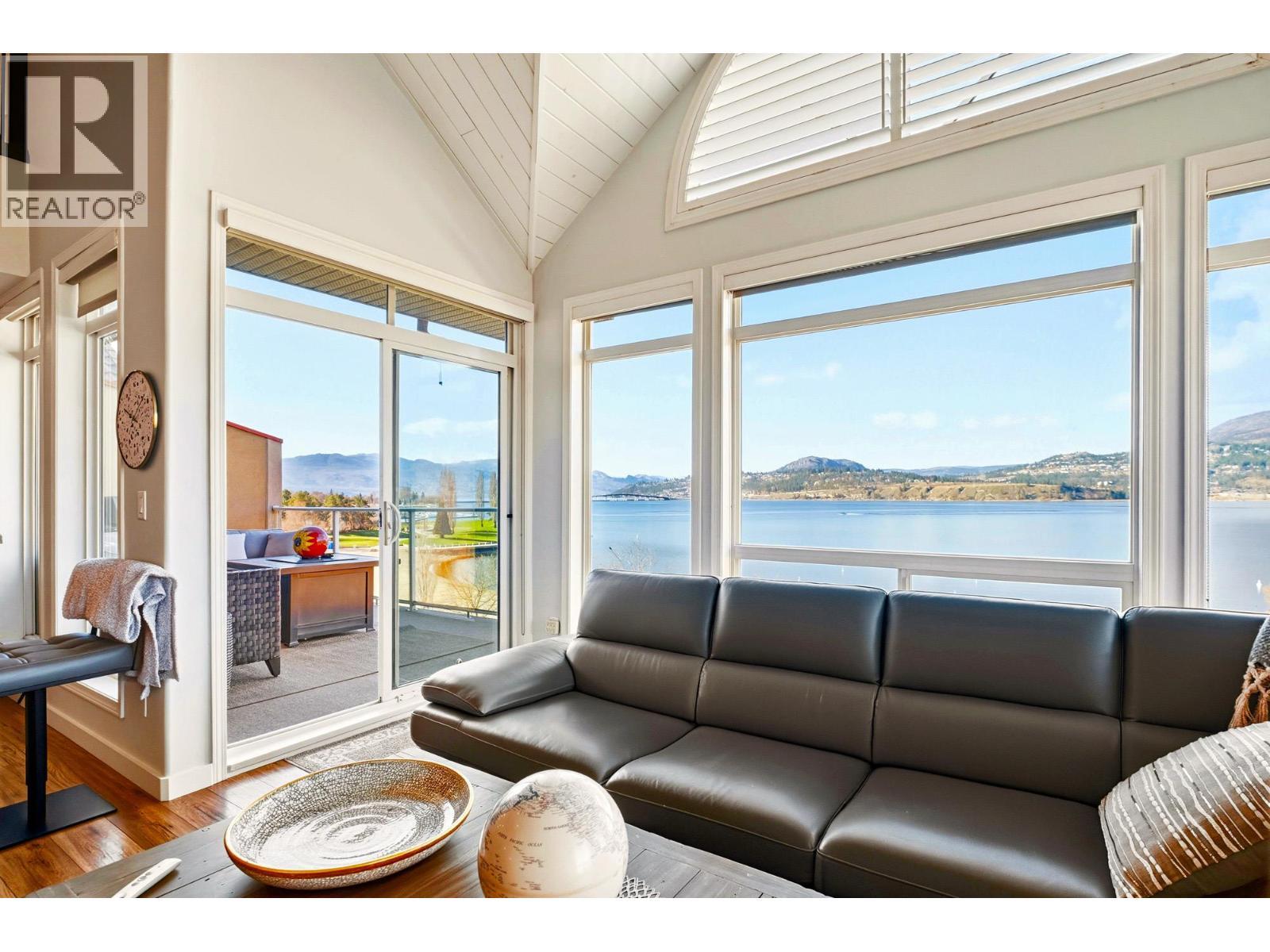 Enjoy close-up waterfront views of Okanagan Lake from this beautifully appointed 2-bedroom, 3-bathroom + loft condo in Discovery Bay. Perfectly positioned along the water, the lagoon offers direct lake access—bringing the Okanagan lifestyle right to your doorstep. Set in the heart of downtown, you’re just steps to sandy beaches, the scenic boardwalk, and moments from Prospera Place, along with an array of restaurants, cafes, shops, and parks. The bright and airy layout features soaring ceilings and oversized windows, flooding the space with natural light while showcasing the lake. The open-concept kitchen flows into the living and dining areas—perfect for entertaining or unwinding. The primary bedroom offers a relaxing retreat. The second bedroom is complemented by a full bathroom and a versatile loft—perfect for a home office or additional living space. Just bring your suitcases because this home features designer furnishings included for your convenience. Resort-style amenities include indoor and outdoor pools, hot tub, fitness center, billiards and event room, and beautifully maintained grounds. Whether as a full-time residence, vacation getaway, or investment, this is effortless lock-and-leave living in one of Kelowna’s most sought-after waterfront communities. This home has been lovingly maintained with fresh paint, both heat pumps replaced, and a state of the art water leak monitoring system for peace of mind, complete with auto shut off. Please view the virtual tour. (id:6769)