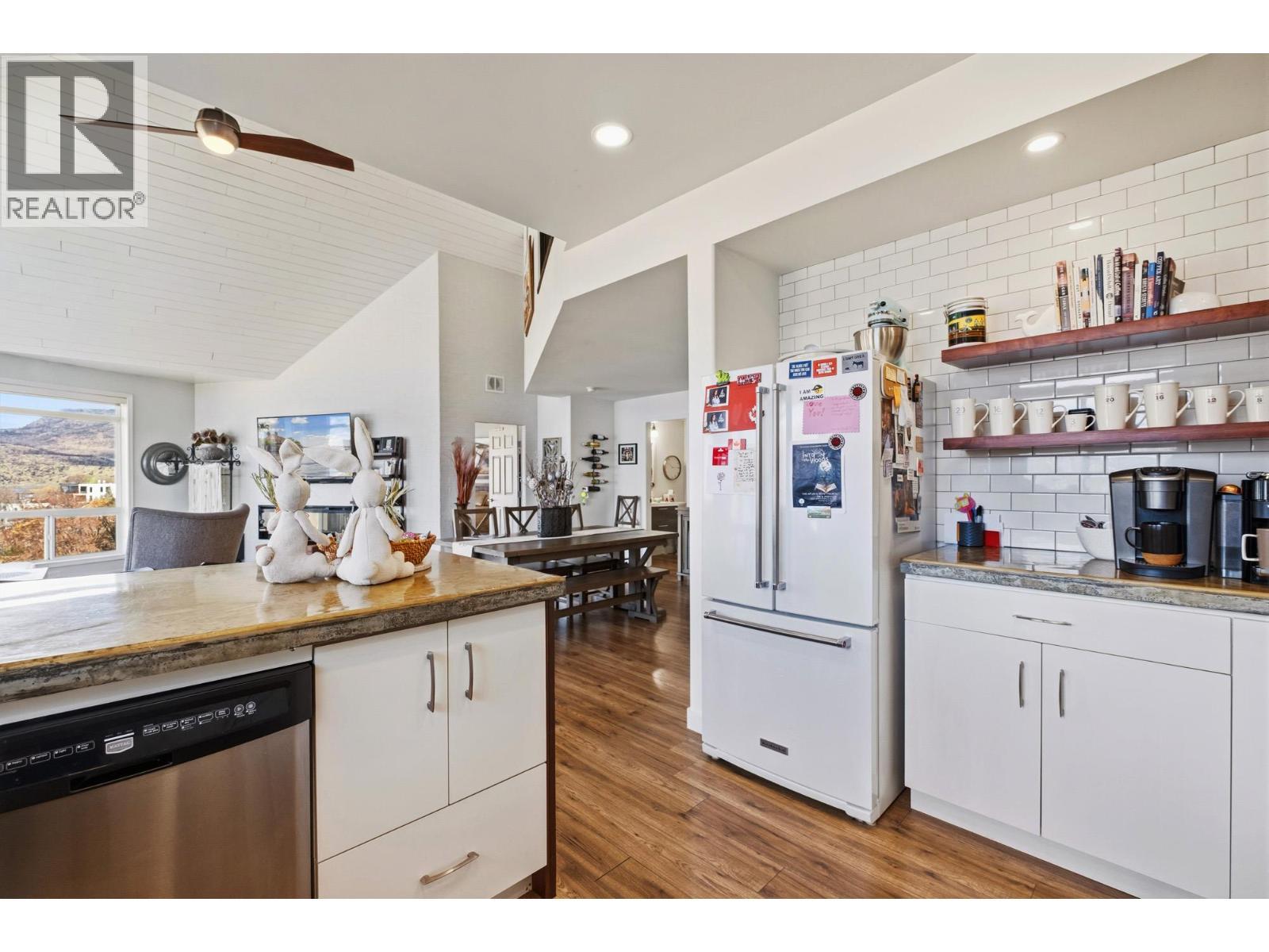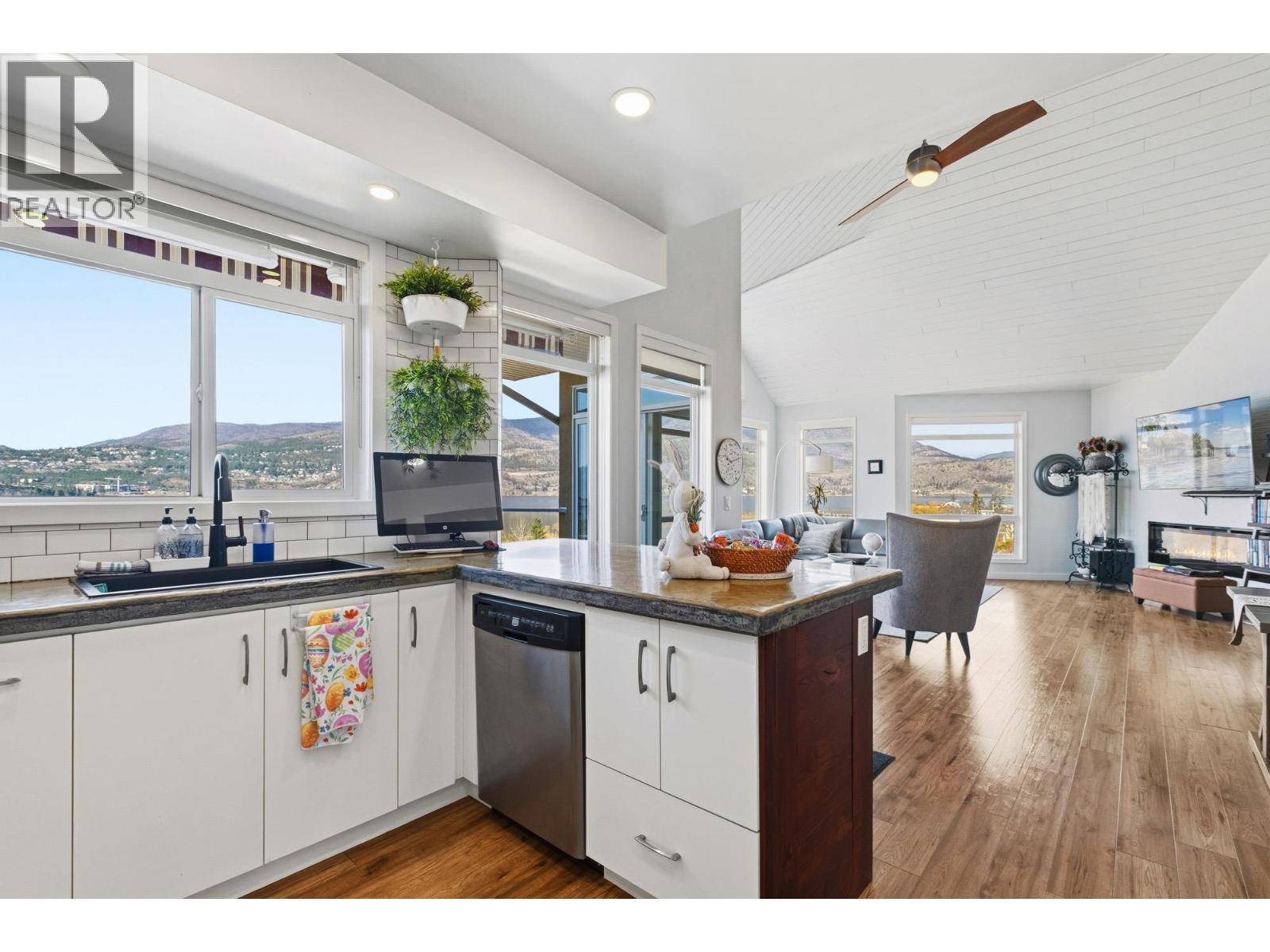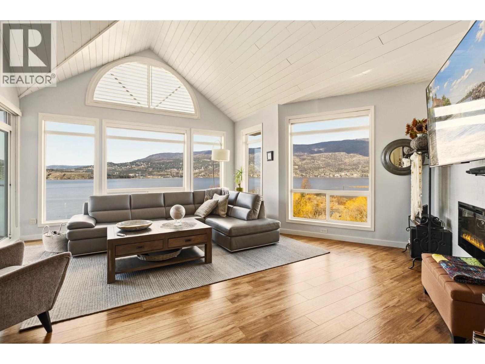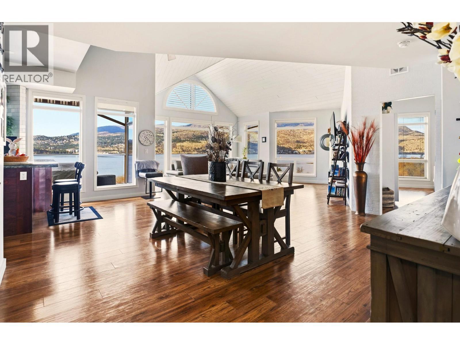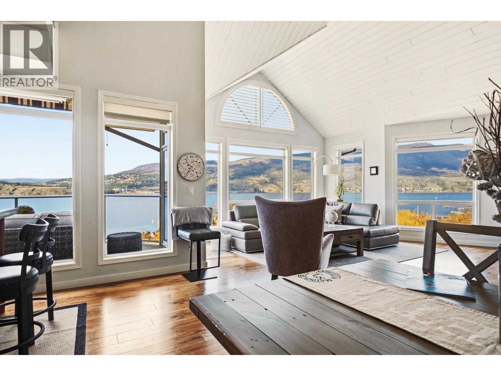 Enjoy close-up waterfront views of Okanagan Lake from this beautifully appointed 2-bedroom, 3-bathroom + loft condo in Discovery Bay. Perfectly positioned along the water, the lagoon offers direct lake access—bringing the Okanagan lifestyle right to your doorstep. Set in the heart of downtown, you’re just steps to sandy beaches, the scenic boardwalk, and moments from Prospera Place, along with an array of restaurants, cafes, shops, and parks. The bright and airy layout features soaring ceilings and oversized windows, flooding the space with natural light while showcasing the lake. The open-concept kitchen flows into the living and dining areas—perfect for entertaining or unwinding. The primary bedroom offers a relaxing retreat. The second bedroom is complemented by a full bathroom and a versatile loft—perfect for a home office or additional living space. Just bring your suitcases because this home features designer furnishings included for your convenience. Resort-style amenities include indoor and outdoor pools, hot tub, fitness center, billiards and event room, and beautifully maintained grounds. Whether as a full-time residence, vacation getaway, or investment, this is effortless lock-and-leave living in one of Kelowna’s most sought-after waterfront communities. This home has been lovingly maintained with fresh paint, both heat pumps replaced, and a state of the art water leak monitoring system for peace of mind, complete with auto shut off. Please view the virtual tour. (id:6769)