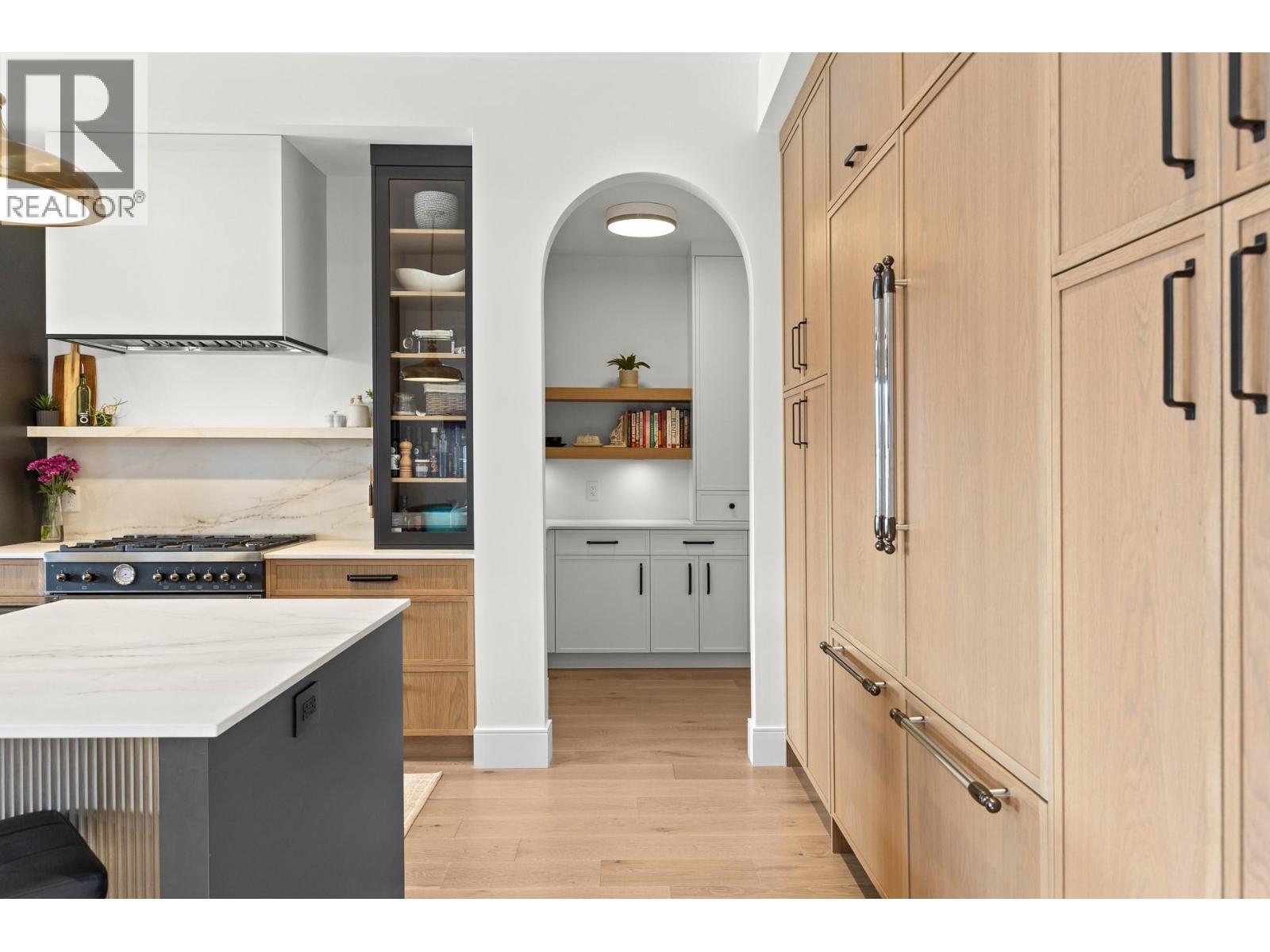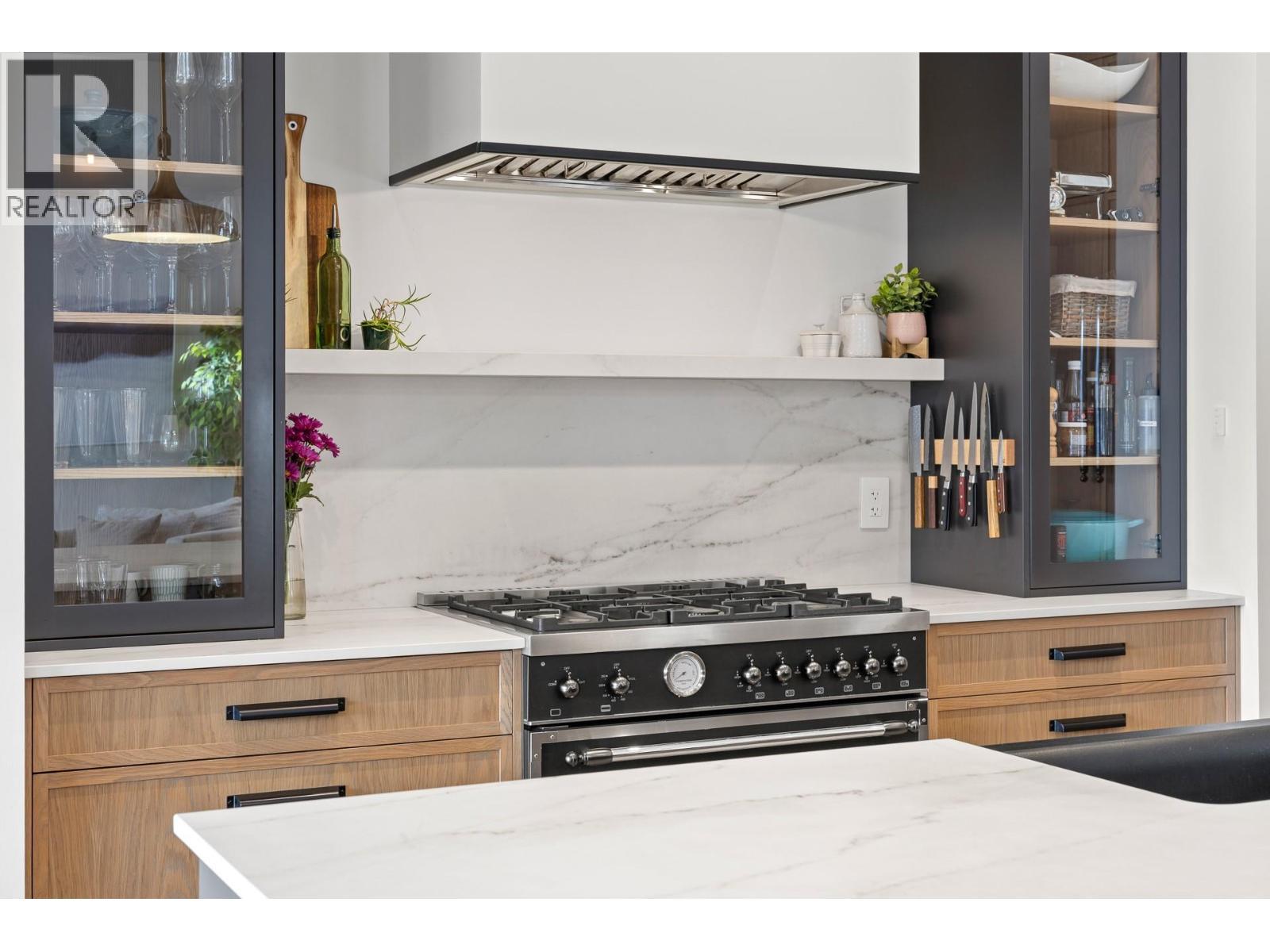 Located in The Orchards in Kelowna’s sought-after Lower Mission, this former ""Award-Winning"" show home by Align West Homes showcases curated, high-end details and professionally styled interiors throughout. Designed with both presence and livability in mind, the main level features vaulted ceilings, wide-plank wire-brushed white oak flooring, and a bright, open-concept layout that flows seamlessly to a large covered deck with gas hookups and automated sun shades for extended seasonal use. The kitchen is both refined and functional, appointed with panel-front appliances, a Bertazzoni gas range, double fridge/freezer, walkthrough pantry, and wet bar with wine cooler — ideal for entertaining. Upstairs, the primary suite offers a private balcony, fireplace, spa-inspired ensuite, and a walk-in closet with custom built-ins. Two additional bedrooms, a built-in study nook, and laundry complete the upper level. The lower level is designed for relaxed living and entertaining, with a spacious family room that opens directly to the salt water pool with auto cover, along with a 4th bedroom and versatile flex space for a gym or office. A fully self-contained one-bedroom legal suite provides flexibility for extended family or additional income, with its own private side entrance and patio area. Fully fenced and low-maintenance, this home offers a complete indoor-outdoor lifestyle in one of Kelowna’s most desirable neighbourhoods and quiet cul-de-sac. (id:6769)