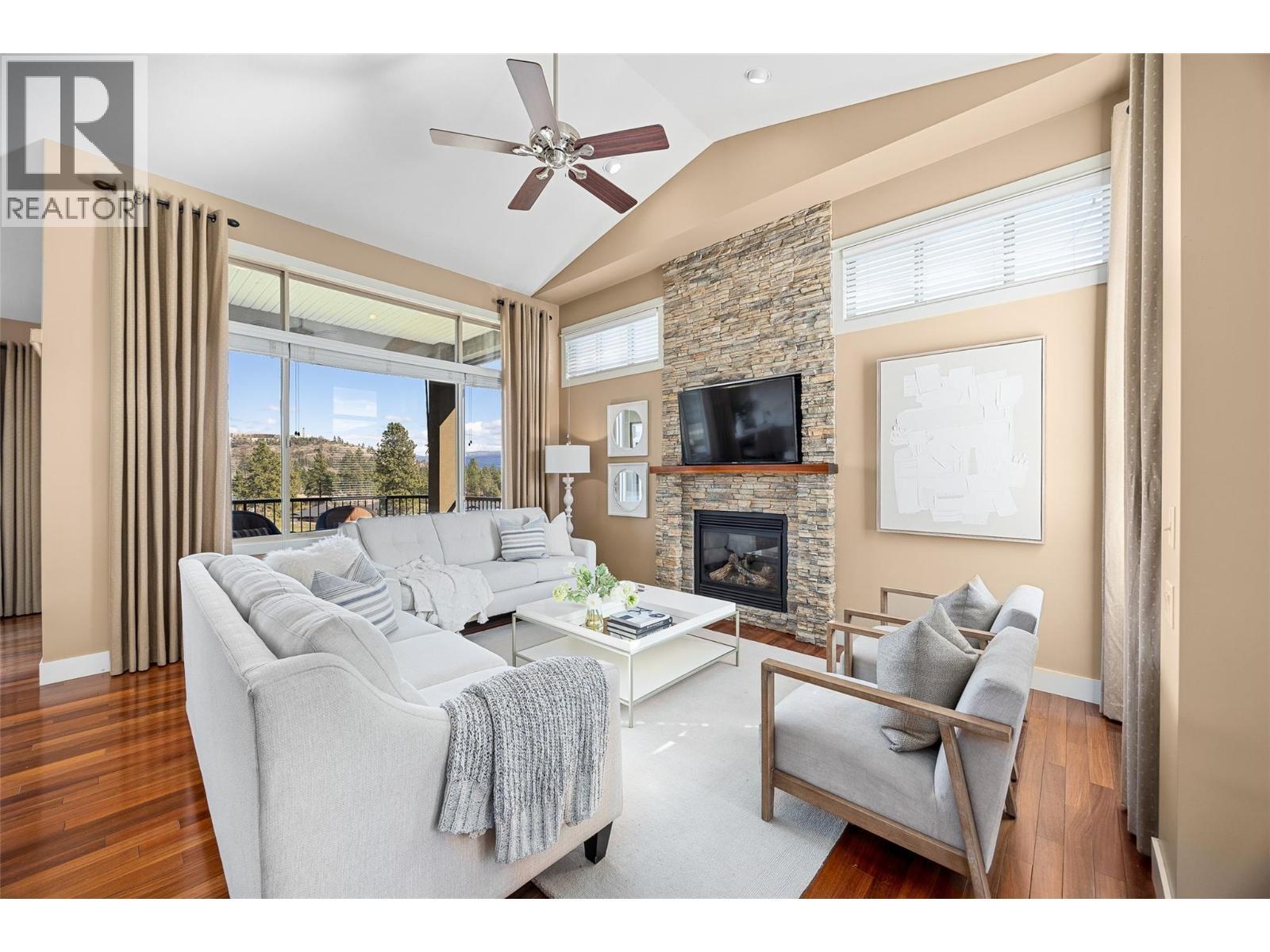 GOLF COURSE & LAKE VIEWS! Elevate your lifestyle with this 4 bedroom + den walk-out rancher in Sonoma Pines! The main level is designed for easy, everyday living with hardwood floors, high ceilings and a bright great room that opens up to a covered balcony with an awning & remote screen. Entertain friends and enjoy slow mornings overlooking the golf course, Okanagan Lake and the Mission Hill bell tower on Mt. Boucherie. The kitchen anchors the home with granite counters, stainless steel appliances and a functional island that keeps everything connected. The primary bedroom is on the main floor with golf course views, a walk-in closet and a 3-pc ensuite with a large glass & tile shower. A second bedroom, powder room and mudroom with laundry off the 2.5 car garage complete the main level. Downstairs offers flexibility for guests or hobbies with two oversized bedrooms, a 4-pc bathroom, a large family room with gas fireplace and walk-out access to the covered back patio and green space. An executive office makes for the perfect workout room or art/craft studio while the utility room offers additional space for storage. Sonoma Pines offers a clubhouse with gym, billiards room, a community area for hosting, plus RV parking (subject to availability). Minutes to Two Eagles Golf Course and close to shopping, wineries, hiking and the lake. Rightsize your home and find the perfect balance of low-maintenance living without giving up space, privacy or views. A fast possession is possible! (id:6769)