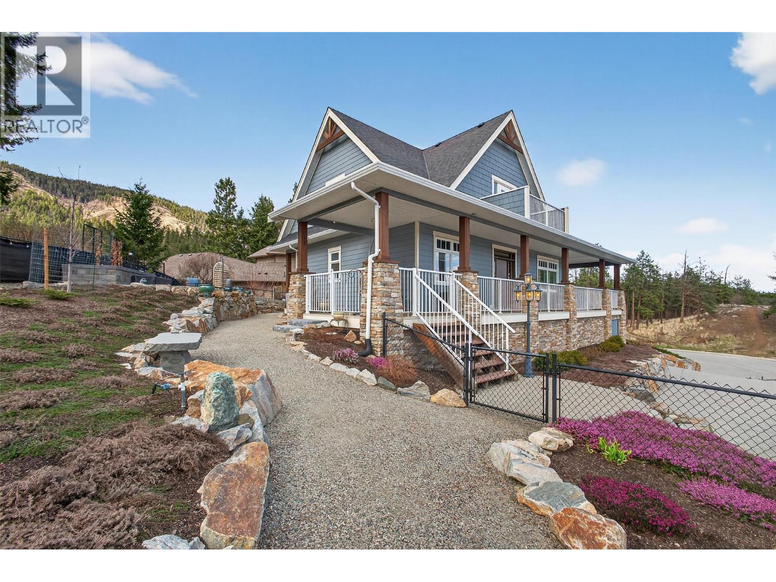 TRULY that “Home Sweet Home” feeling! Tucked into one of West Kelowna’s most peaceful pockets in Tallus Ridge, this custom cottage style home offers a rare sense of comfort, privacy, and everyday escape. Set on a quiet cul-de-sac directly across from Stone Grove Park, the setting invites a slower, more intentional pace of living. Spanning 2,700+ sqft (including unfinished basement), this 3-bedroom, 2-bath home blends warmth and functionality with a layout that feels both welcoming and refined. The main level is designed for connection, featuring a beautifully appointed kitchen with Norelco custom cabinetry, granite countertops, and induction cooking, flowing seamlessly into bright, inviting living spaces ideal for gathering and unwinding. Upstairs offers a peaceful retreat with the primary suite, second bedroom, and a spa-inspired ensuite featuring a walk-in tiled shower and deep soaker tub, the perfect place to recharge. One of the most charming features is the wraparound veranda with remote sunshades, it offers an extension of the living space and the perfect spot for slow mornings & those golden-hour moments. The fully landscaped and irrigated 0.41-acre property has been designed for privacy and enjoyment, offering multiple stone patio areas, a pergola with awning overlooking Shannon Lake, garden spaces, and room to add a pool for those envisioning a true backyard retreat. A standout feature is the detached double garage & workshop, offering 1,000+ sq. ft. of versatile space with 220 AMP service, EV-ready wiring, and direct access to the backyard — ideal for hobbies, storage, or future flexibility. With vision, there is also potential to enhance the property over time, including the option to explore a suite in the lower level and/or a carriage suite above the garage. Steps away from Shannon Lake Golf Course, and surrounded by trails, parks, and the natural beauty of Tallus Ridge -- this property invites you to slow down, settle in, and truly feel at home. (id:6769)