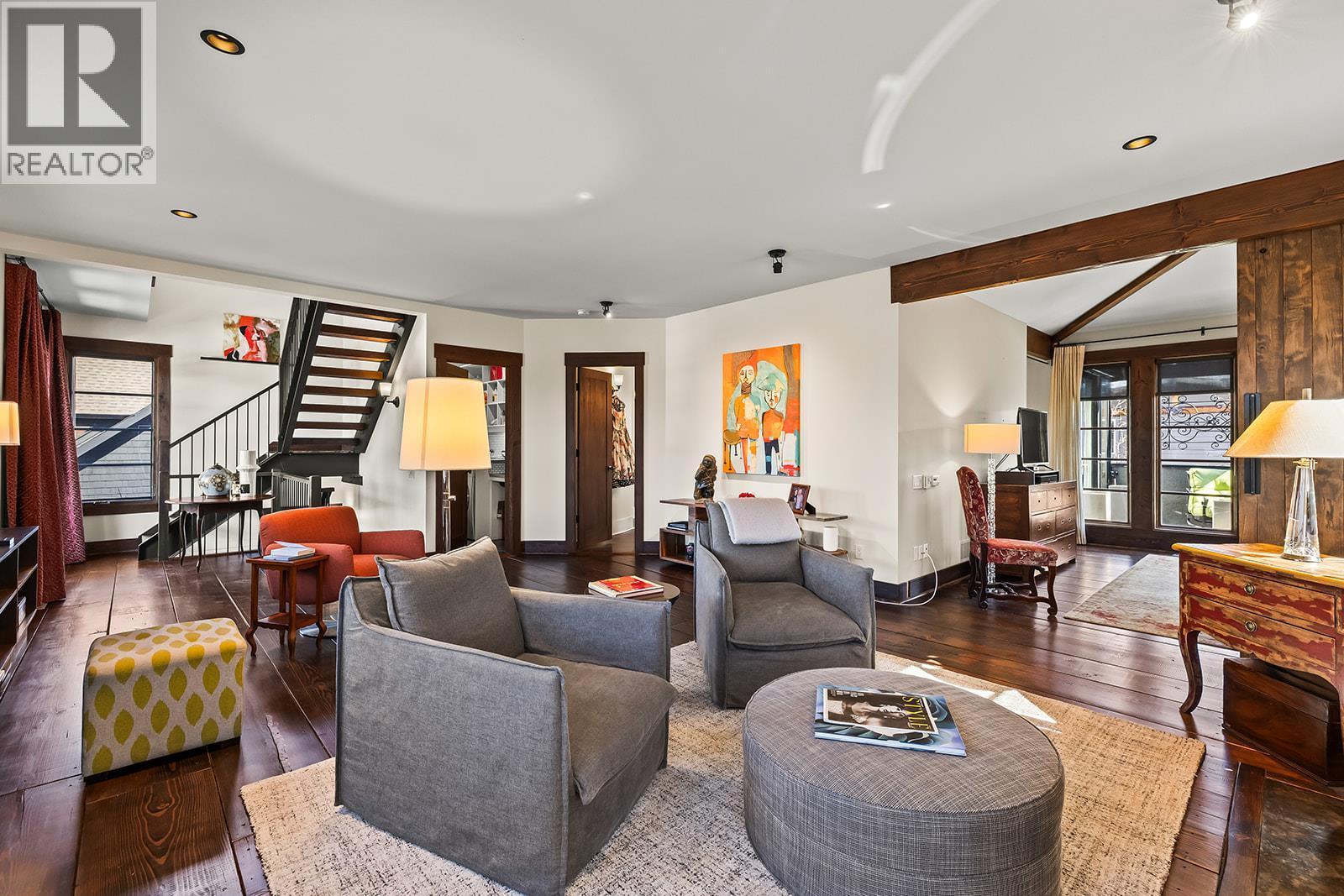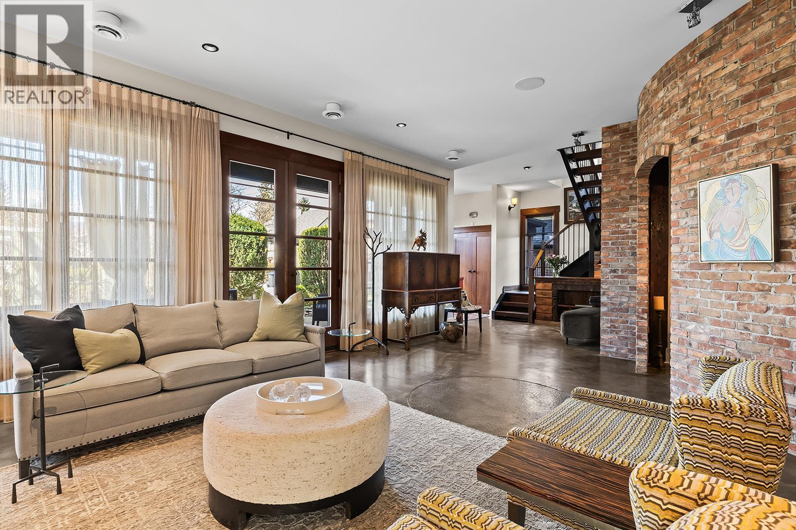 Brownstone-Inspired Living Just Steps to Okanagan Lake & Pandosy Village. Tucked into one of the area’s most walkable and sought-after neighbourhoods, this distinctive custom built three-bedroom three bathroom plus office residence offers a rare blend of Okanagan lifestyle and brownstone-inspired design, just steps to the lake and vibrant Pandosy Village amenities. The Pride of ownership is evident throughout this one of a kind properties, Architecturally striking, the home features concrete floors, exposed brick accents, vaulted ceilings, and reclaimed hardwood, creating a warm, sophisticated space with a refined, loft-style feel. The home offers stunning master suite with adjoining sitting room with fireplace. Top of the line appliances & window coverings, a secured carport with electric gate, and offers plenty of storage The outdoor living is exceptional and thoughtfully designed for how people truly live in the Okanagan. A stunning interlocking brick patio anchors the space, surrounded by pond beautifully curated gardens and multiple seating areas. The covered outdoor dining area invites long summer evenings of effortless entertaining, while the low-maintenance design, allows for a true lock-and-leave lifestyle. Ideal for those seeking to simplify without compromise, this home offers the perfect balance of character, walkability, and indoor-outdoor living in one of the region’s most desirable lake communities. (id:6769)